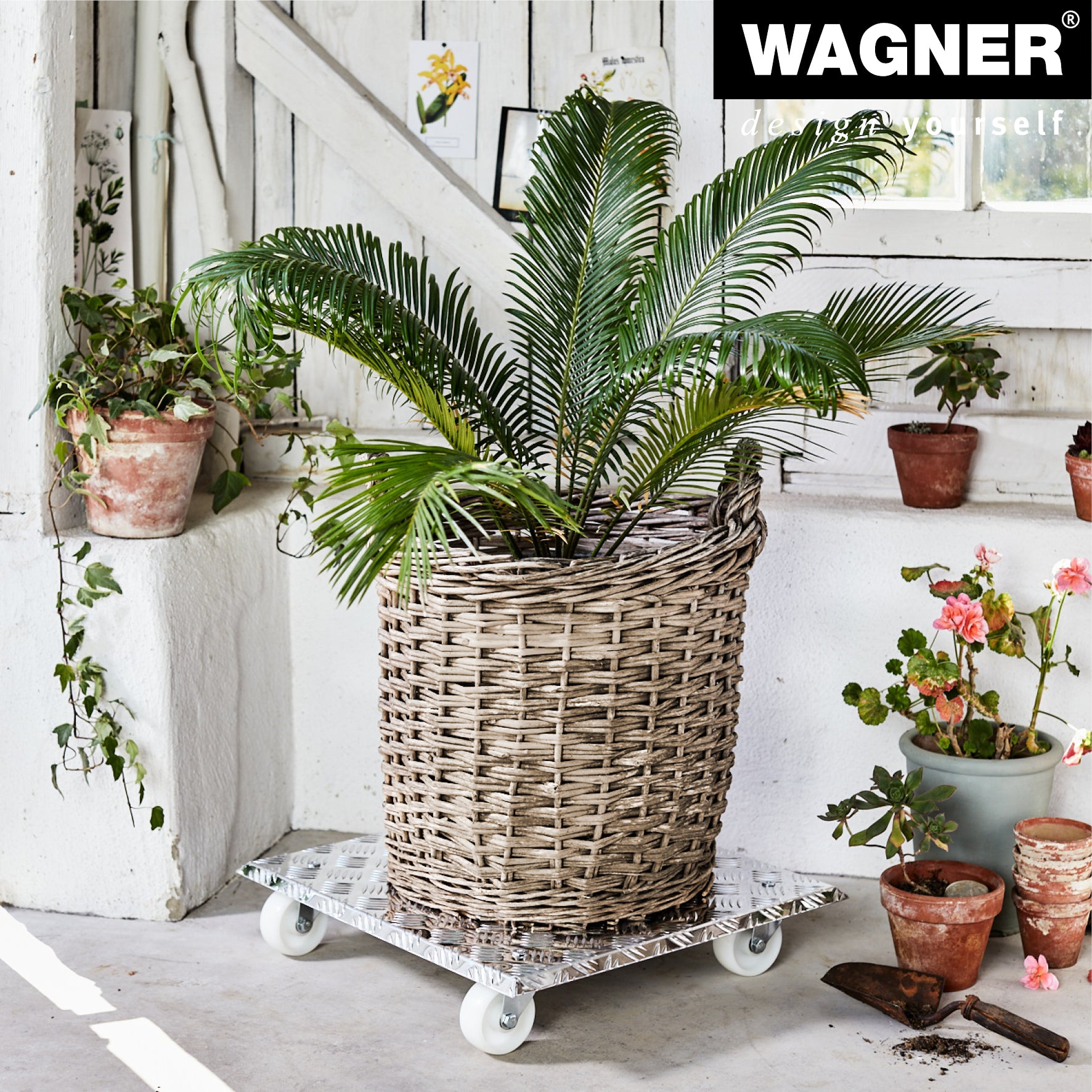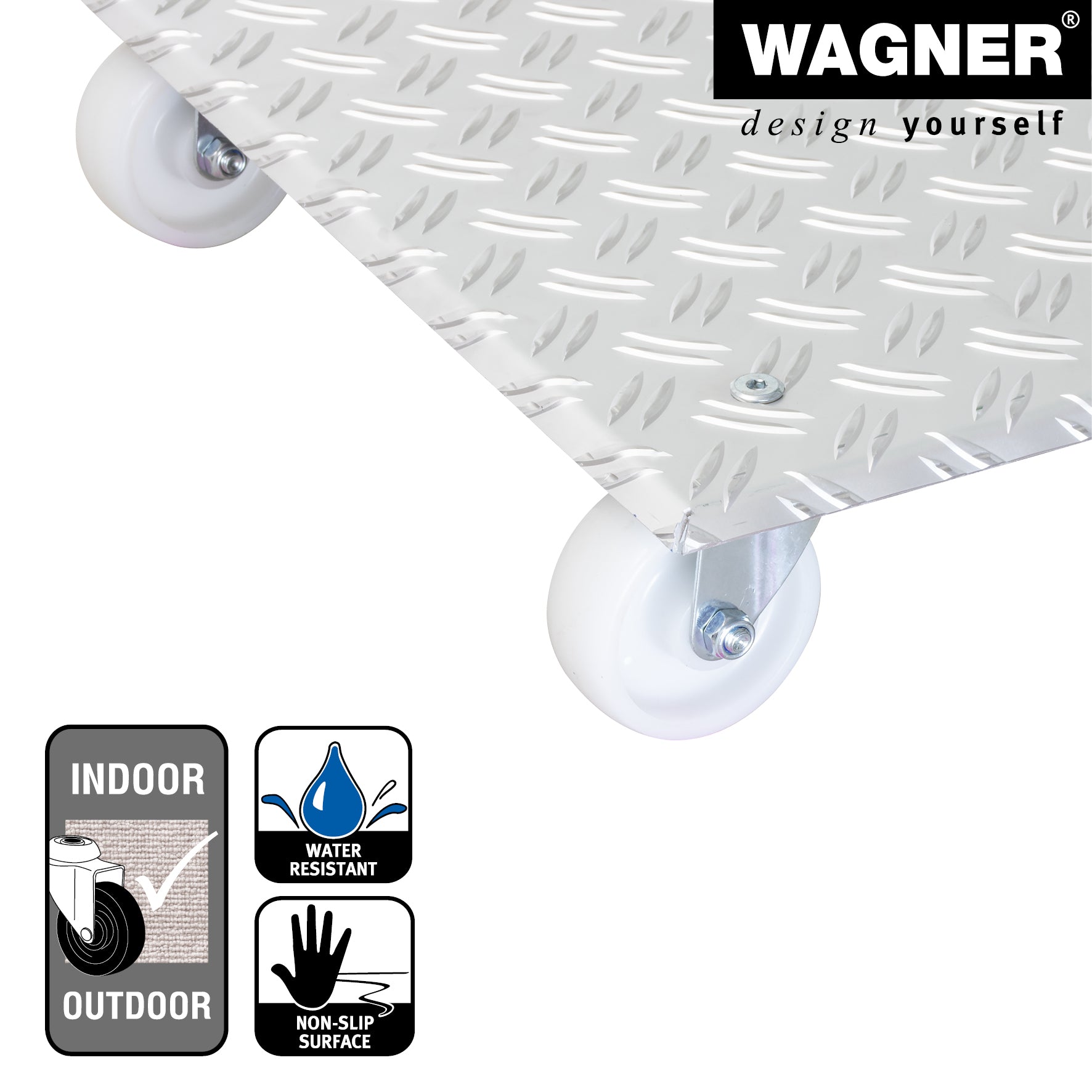 With a load capacity of 330 lbs the Wagner Large Square Aluminum Plant Caddy is heavy-duty and is perfect for your sizable plants or small trees. Solid rust-free diamond plated aluminum caddy is 18.5" square with tapered edges that work great from drainage when used outdoors. Dimensionally-stable load surface of 17.7" X 17.7". Durable caster wheels work best with soft floors such as carpet or cork. Ribbed surface design prevents heavy pots from slipping during transport. Suited for use in protected outdoor areas do not permanently expose to humidity. Made in Germany. The Wagner company located in southern Germany near the Black Forest has earned a reputation for exceptional quality. With over 40 years experience in design and manufacturing their products are rigorously tested for quality safety and durability.